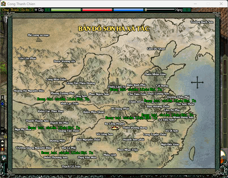 | Thành | Thái Sơn - Hào Kiệt | S4 - Phật Sơn | Máy chủ liên thông | Công Thành Chiến 3 | Công Thành Chiến 4 |