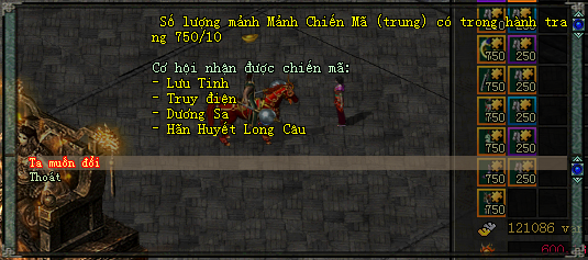 | Chiến Mã (hiếm) | Lưu Tinh Chiến Mã | ||